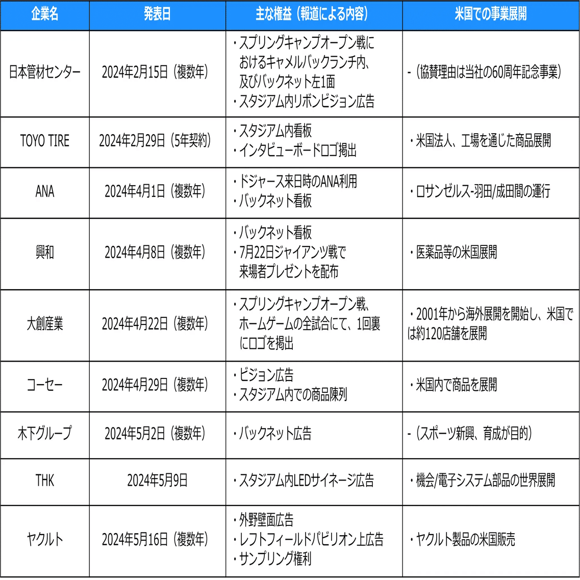 ドジャースとのスポンサー契約を発表した日本企業