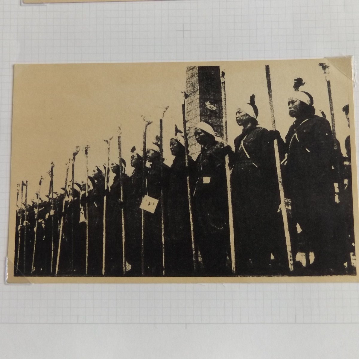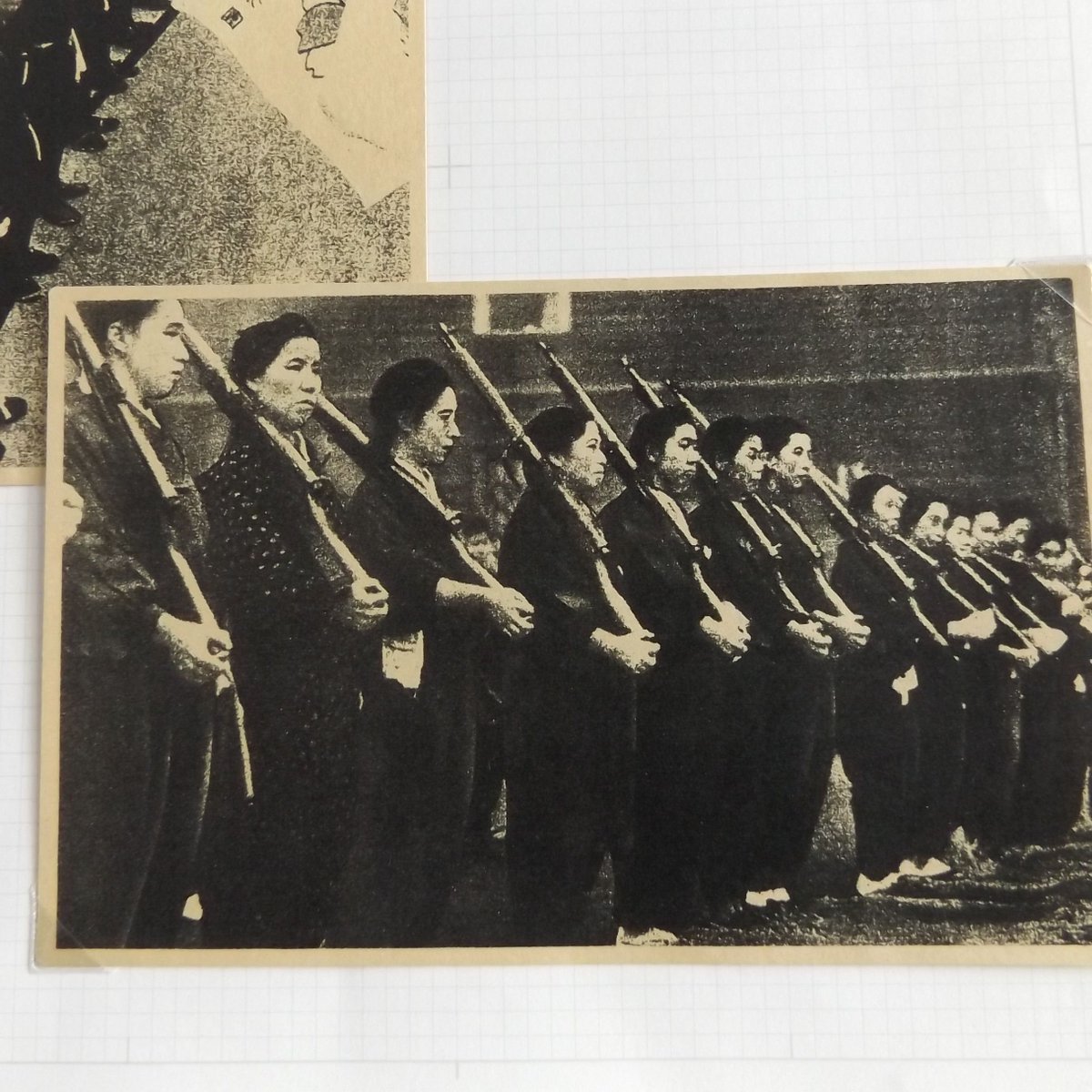 婦人会の軍事訓練銃を担がされ疲れた表情の年配の女性たち