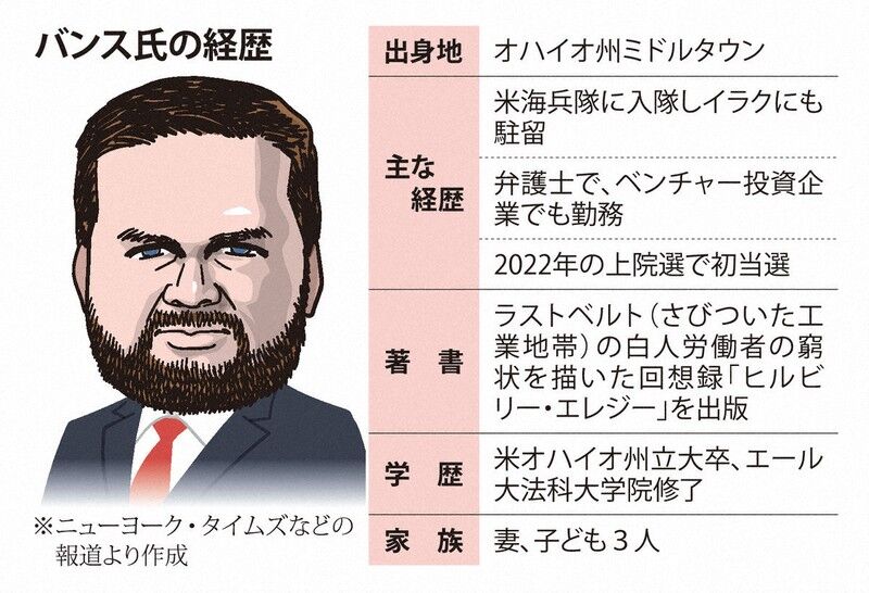 共和党VICE=副大統領バンス【39歳】母はドラッグ中毒白人貧困層出自。海兵隊・イェール大卒『【元】反トランプ陣営』反グローバルで、仕切る。。